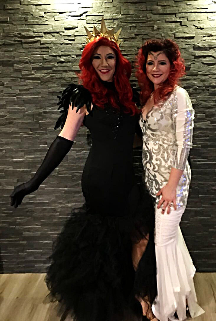 Die viele Arbeit hat sich ohne Frage gelohnt, aber ich kann Euch sagen, ich träume heute noch davon wie ich von bergen aus Tüll angegriffen werde. Zu guter letzt zeige ich Euch jetzt noch die Kombination aus der schwarzen und der weißen Königin. Das weiße Kleid war früher mal zwei Kleider. Den Ausschnitt habe ich geschlossen, damit man die künstliche Silhouettenhalterung nicht sieht.. ist ja klar. Praktisch ist auch, dass eben diese künstliche Silhouette ziemlich genau meiner Konfektionsgröße entspricht. Ich kann also jetzt auch aus einem pompösen und paillettenreichen Haut Couture Fundus schöpfen.